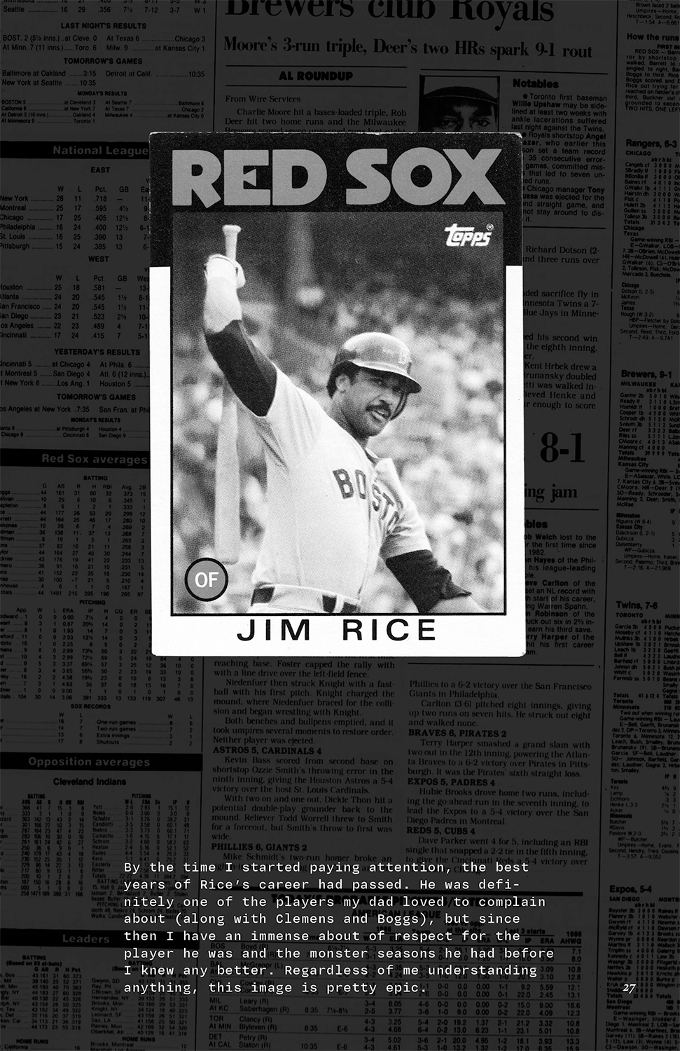This is a zine I wrote about 1986 Topps baseball cards. Well, that was the intention. It eventually delves into the time in my life that these cards made an impact, forcing me to think about why. That is (obviously) impacted by the implications of parents (and me and everyone I love) aging, and along with that, things naturally changing. It’s a love note. To the cards, my childhood, and to my father.