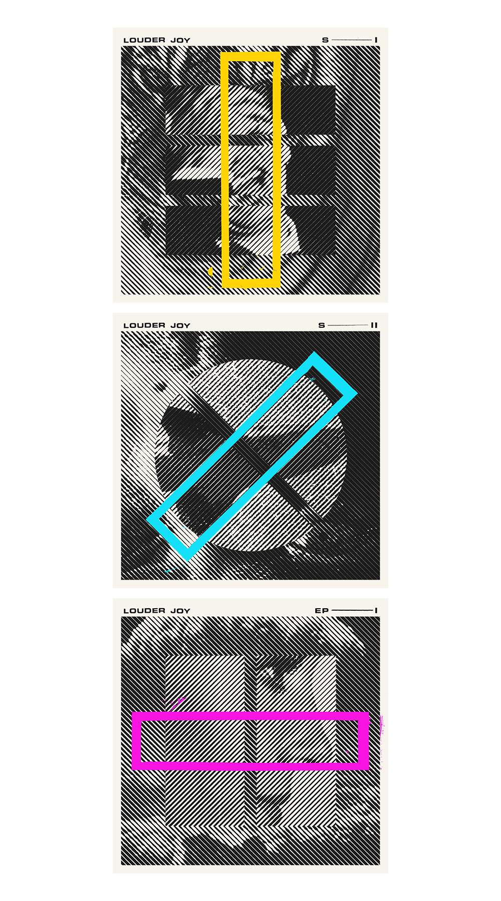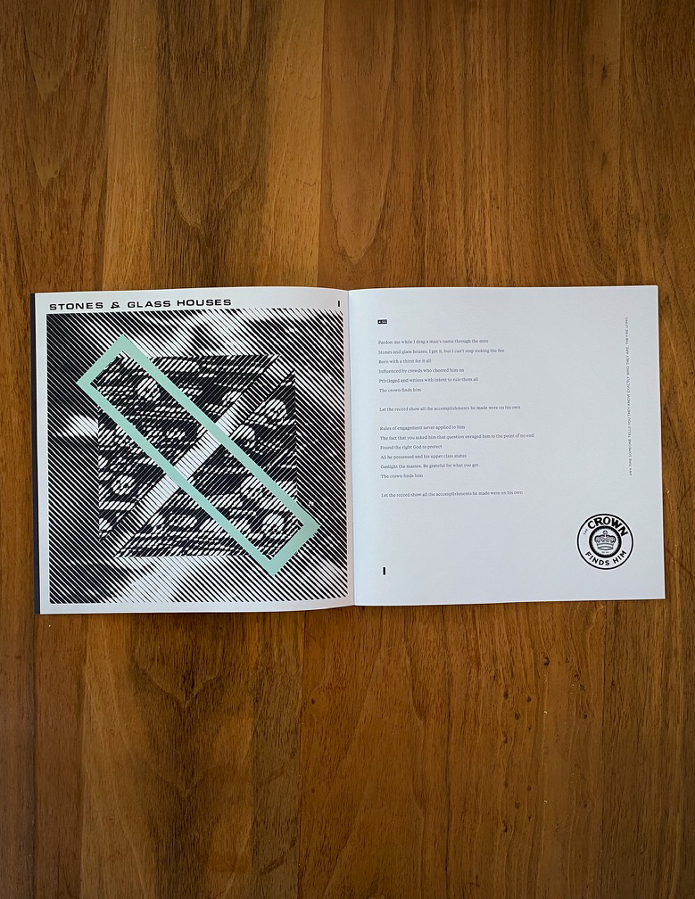 The art itself is rooted in pinning one extreme against another. For the treatment, I took that pretty literally, with the halftone lines on one image contrasting against the opposite of the other. The painted rectangles advance as the songs do.